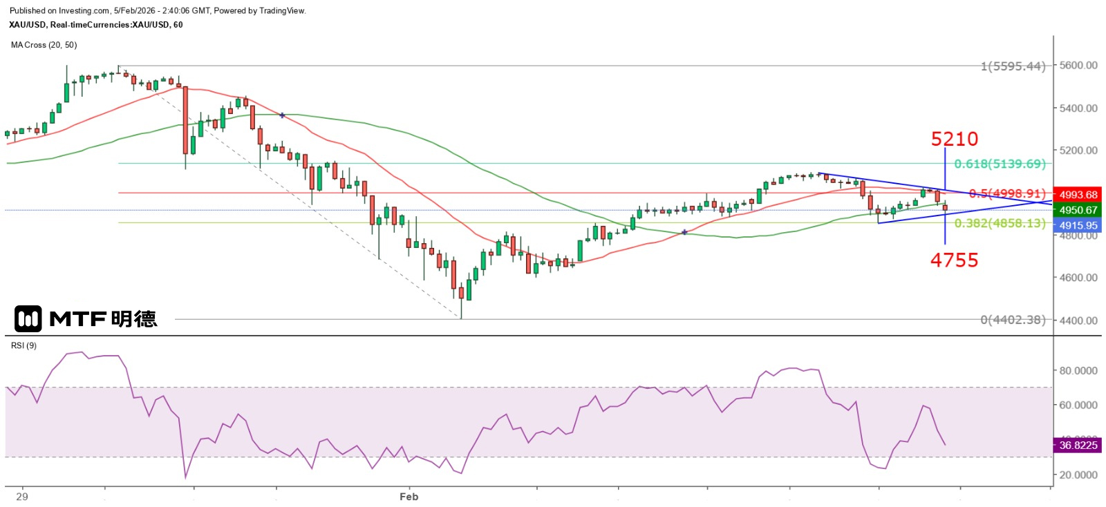 《金价呈收窄三角形整固待破》5/2/2026 10:39 完稿