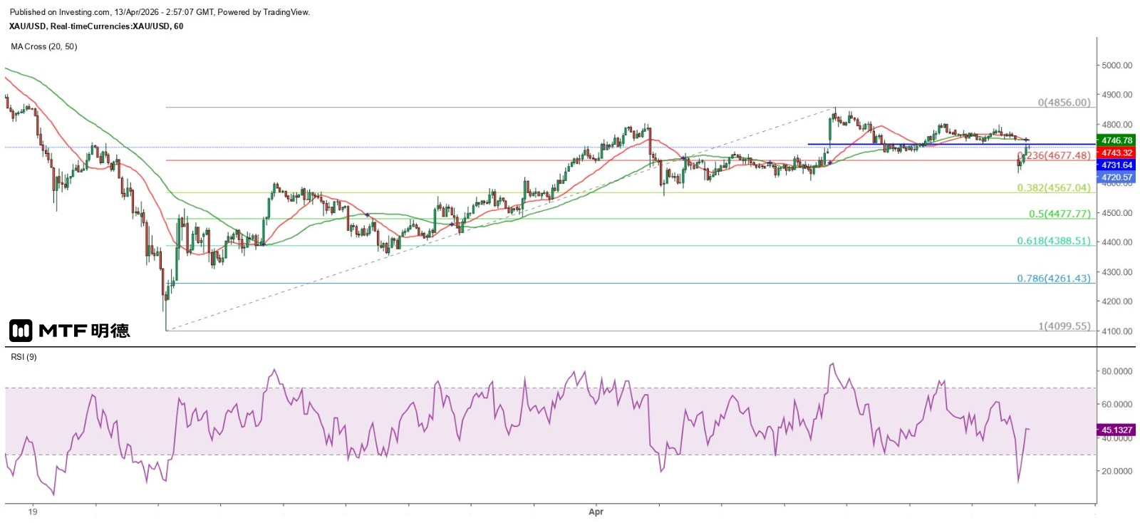 《金價日內料4753美元以下反覆》13/4/2026 10:54 完稿