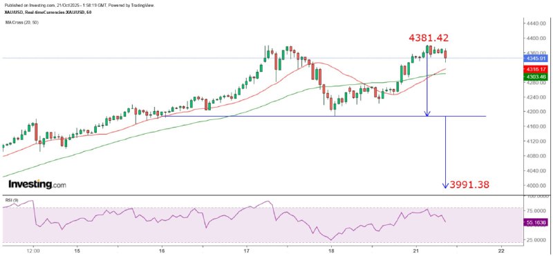 《金价小时图呈大型双顶》21/10/2025 9:58 完稿