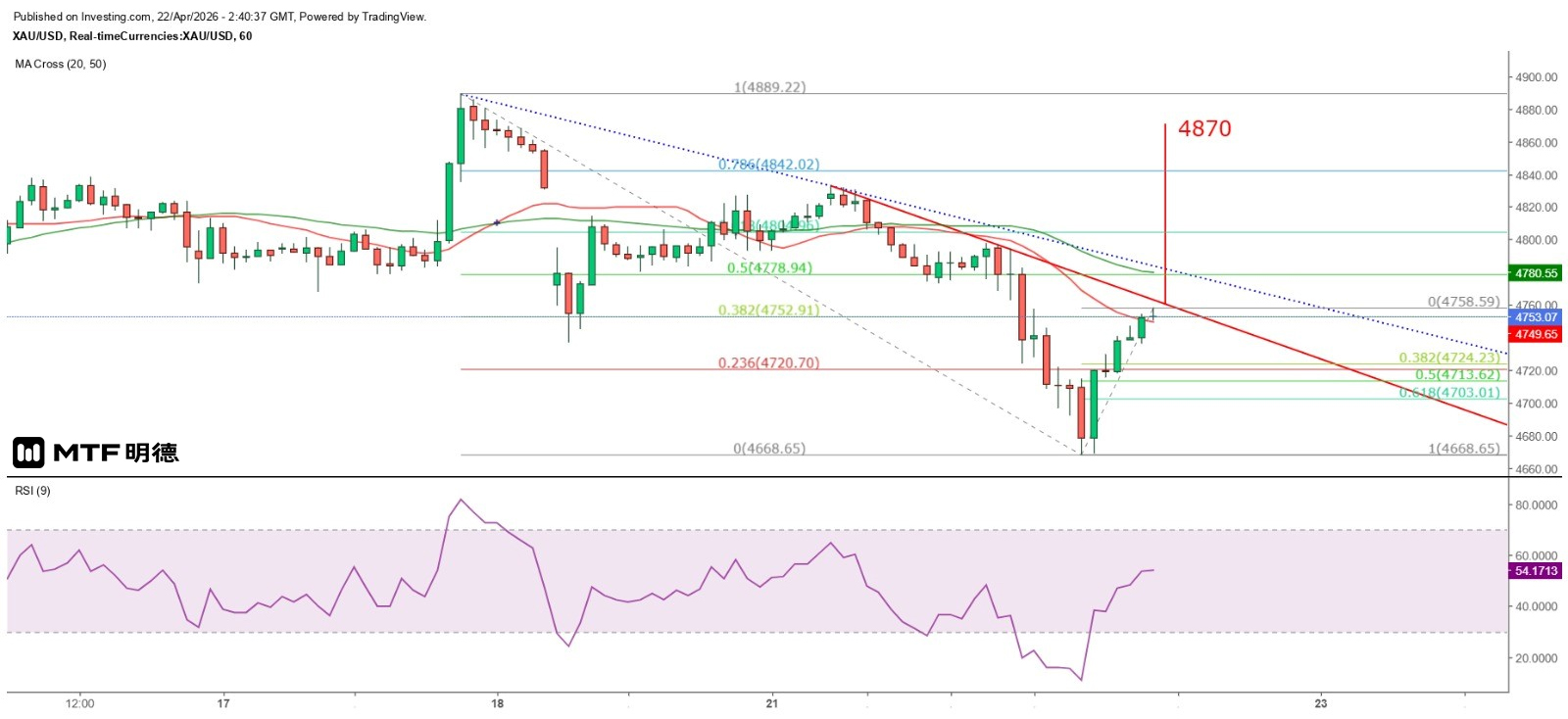 《金价短线或营造双底形态》22/4/2026 10:38 完稿