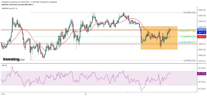 不過,金價反應不大,稍作回調後即進一步攀升,在倫敦收市後不久及紐約市尾段兩度高見3990美元水平,其後才以雙頂形態回落,今早在亞洲開市初段急跌至3966美元水平反彈,惟兩度升至3977美元水平受阻回落,後再急插至3964.66美元後再反彈上3970美元以上。整體而言,金價反覆波動,但昨天是10月27日跌穿20日SMA(現約4082)以來,首次未能觸及4000美元大關。金價的波動性加劇,有「雙殺」的味道,亦即將缺乏實力的好淡散戶皆淘汰掉,然後展開新一輪趨勢市。