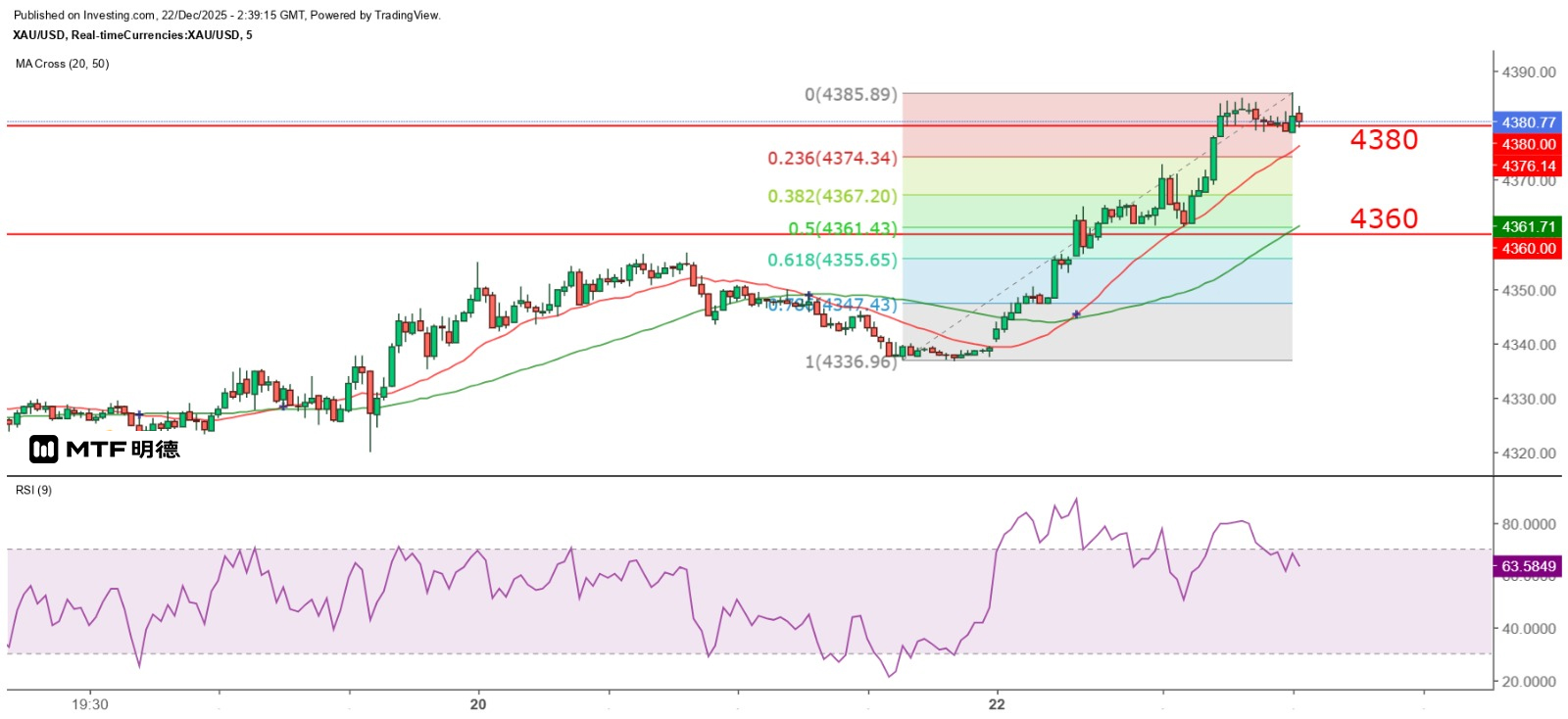 雖然金價創下新高,但亦令日線圖的大雙頂形態更加明顯,金價要進一步攀升,必須突破4400美元關口,並持續守穩在該位之上,如此才會令更多投資者相信金價已在4400美元水平築底,有更大的上升空間,推動金價進一步上升。今早所見,金價創新高的力度不強,其後亦未見大量買盤湧入,估計是聖誕節假期即將來臨,大盤早已離場,造成水中無魚蝦自大。