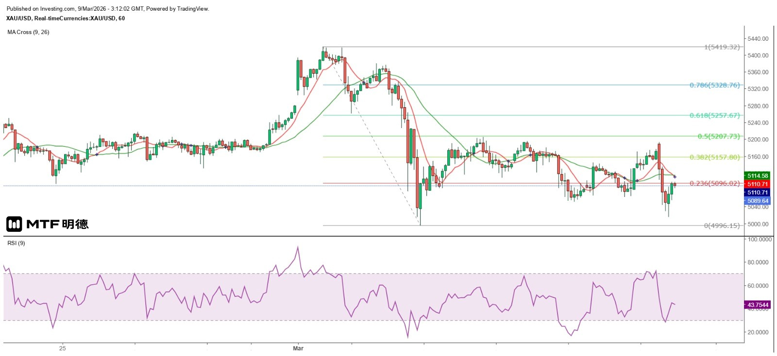 美國2月份非農就業報告遠差於預期,非農職位減少9.2萬,失業率升0.1個百分點至4.4%。另外,1月份零售銷售按月跌0.2%,雖未如預期跌0.3%般差,仍較去年12月轉差。非農數據推動金價急漲,現貨金價在數據公布後急升至5130美元水平,其後逐步回落,甚至跌穿數據公布前的低位,至5074.72美元才再度攀升,其後在紐約市反覆上升至5176.32美元。