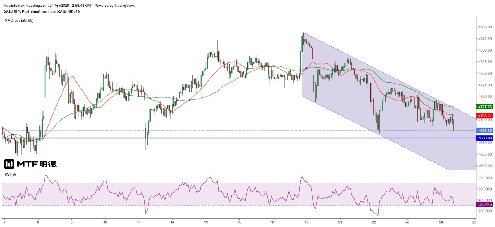 《金價短線反彈料仍受制50日線》24/4/2026 10:55 完稿